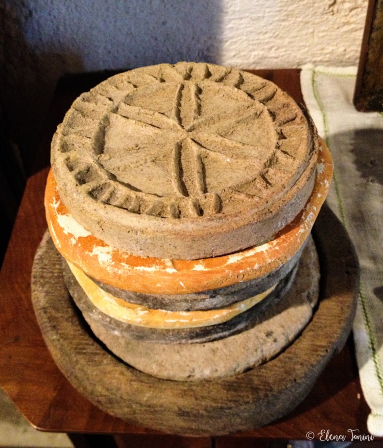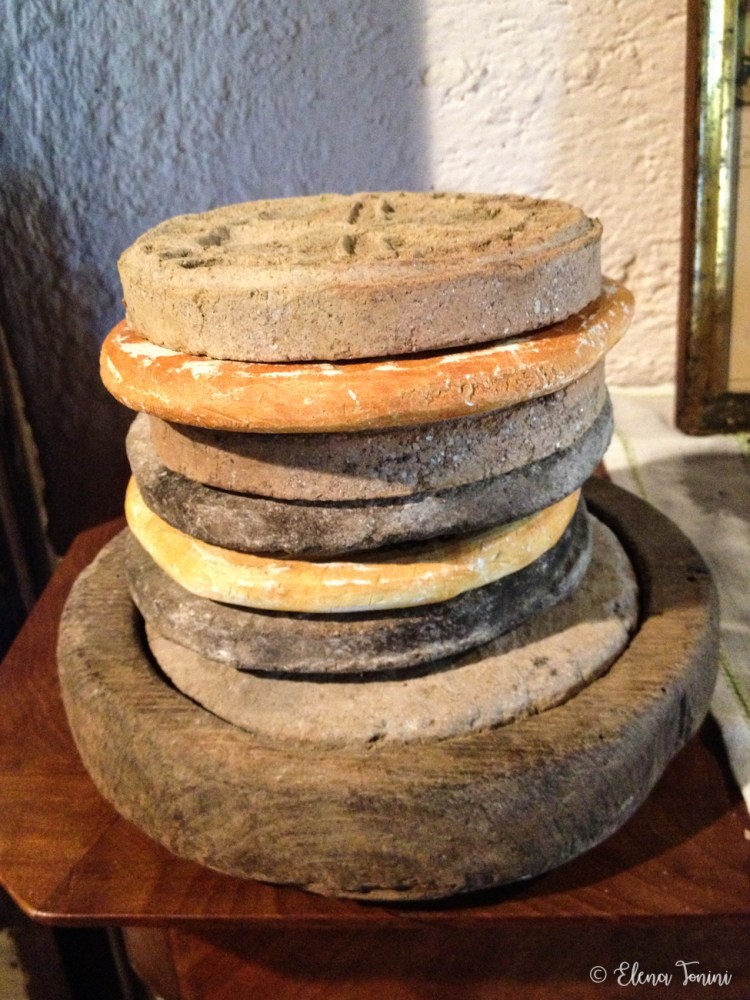 Ricostruzione di come venivano impilate tigelle e crescente per la cottura (Raccolta di Cose Montesine del Museo di Iola di Montese)