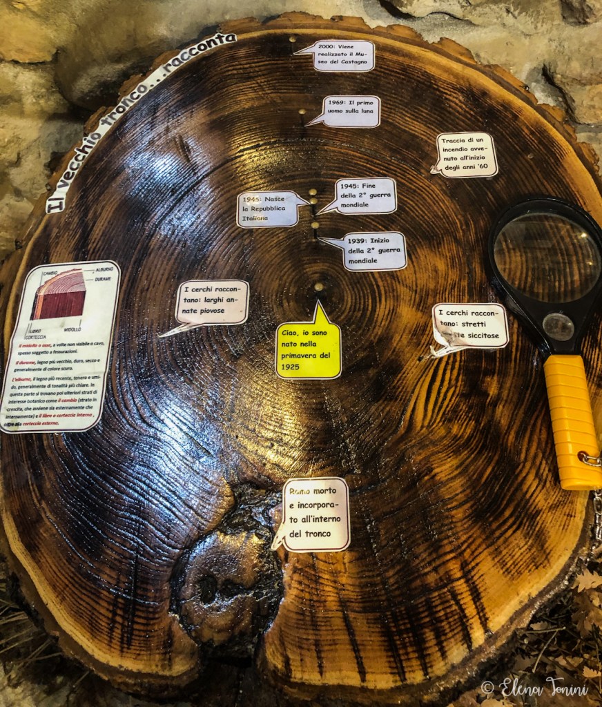 - un secondo, più ampio, percorso (2,5 km A/R) denominato “ARTinWOOD” dove, all’interno del castagneto di Monte San Giacomo, è possibile visionare vere e proprie opere d’arte create utilizzando i castagni e votare le tre preferite utilizzando una simpatica scheda che troverete al punto di partenza dell’itinerario